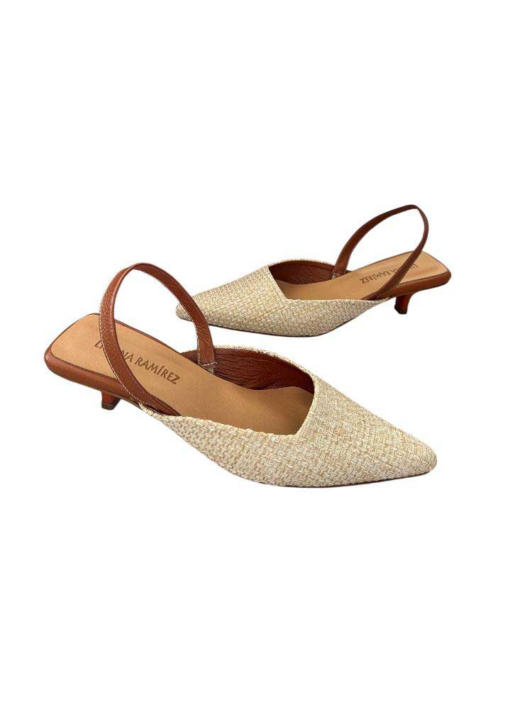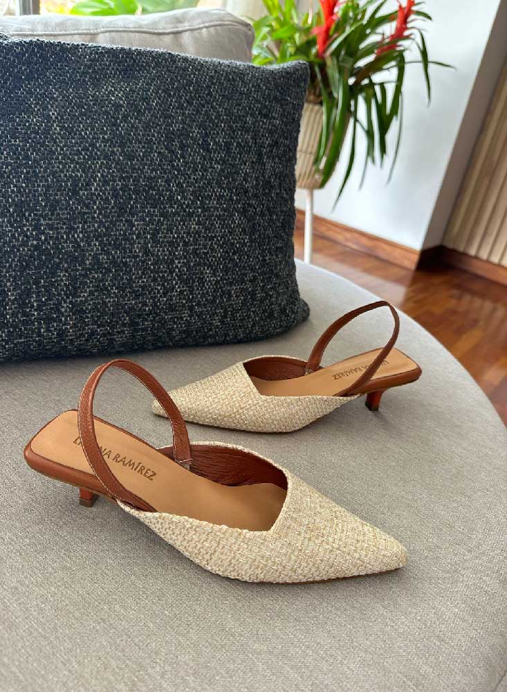 Stilettos de yute forrados en cuero, perfectos para un look natural y sofisticado. Combinan textura artesanal con un acabado moderno.